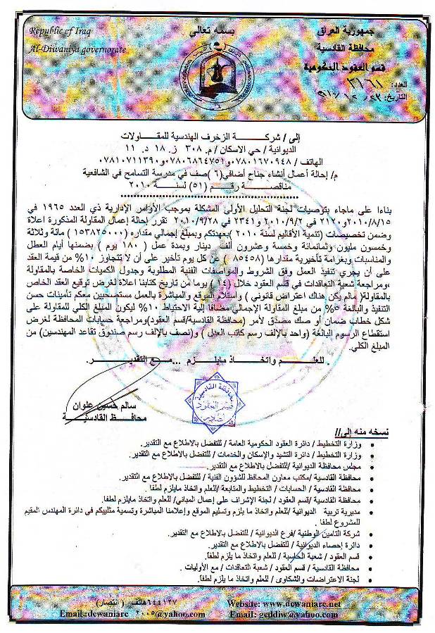 إحالة مناقصة رقم (51) لعام 2010﴾