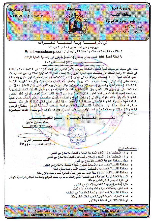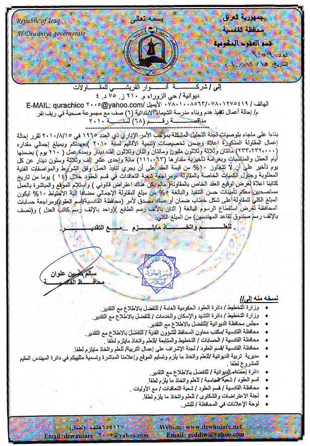إحالة مناقصة رقم (9) لعام 2010﴾