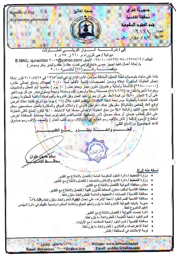 إحالة مناقصة رقم (2) لعام 2010﴾